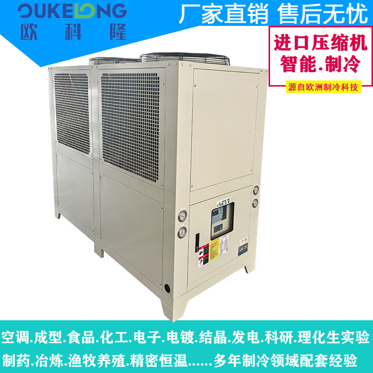 歐科隆25HP風冷式冷水機是一款大功率工業級制冷設備,專為中型制造企業和連續生產場景設計。該機型采用高效風冷散熱技術,突破性實現25匹(約75kW)制冷量,無需外接冷卻塔,大幅降低安裝復雜度與運維成本。