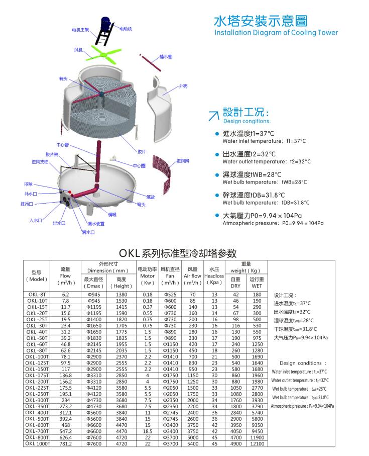 歐科隆圓形逆流式冷卻塔有三大系列、九種型號、九十個產(chǎn)品.