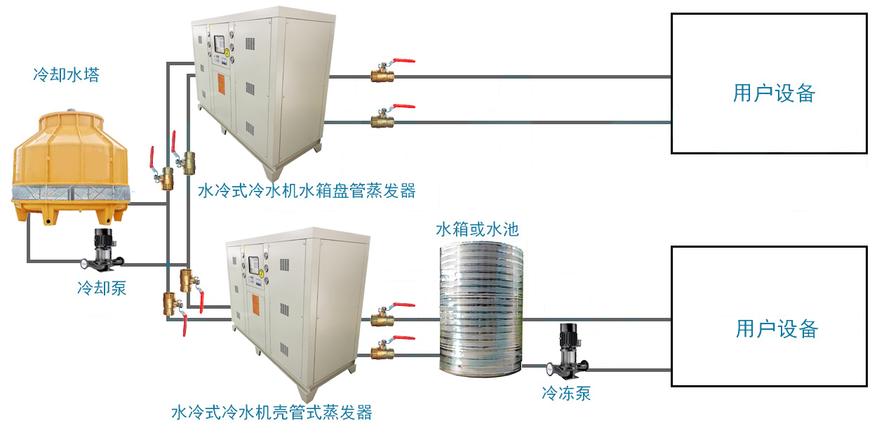 1.歐科隆水冷箱式冷水機系統方案簡易圖: